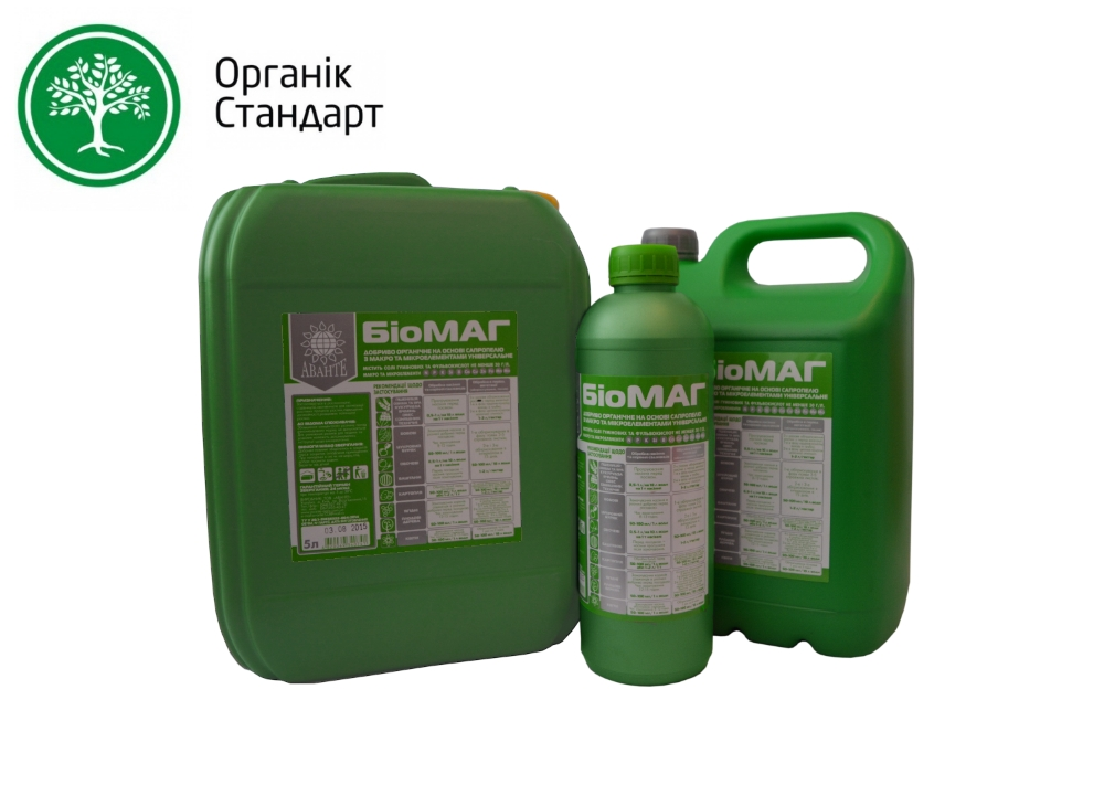 БіоМАГ - органічне, універсальне, екологічно безпечне інтегроване добриво і регулятор росту нового покоління на основі сапропелю, який є біологічно активною речовиною з набором макро- і мікроелементів, гумінових і фульво кислот, які роблять благотворний вплив на загальний розвиток рослин. БіоМАГ знаходиться в рідкій формі.